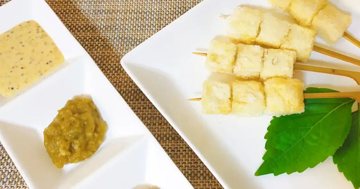 おうちでも居酒屋気分を楽しめる新感覚の揚げ出し豆腐です。特製のつけだれはどれも個性的。野菜も刺して揚げたり楽しみ方もいろいろ♪