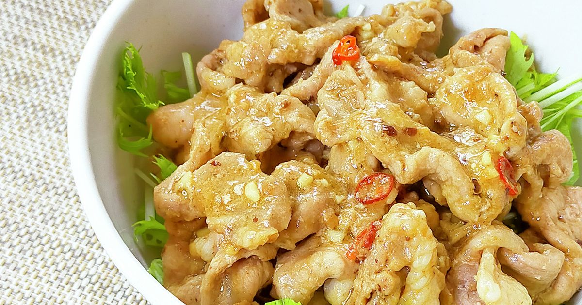 深いコクが特徴のトウチジャンを使った豚丼。混ぜてレンジするだけのお手軽ご飯です。程よく効かせたにんにくと唐辛子でお箸が進む♪
